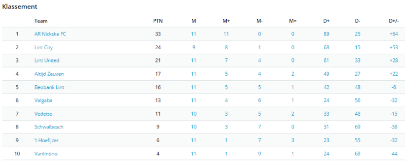 LIntse zaalvoetbalLiga seizoen 2024 - 2025 :